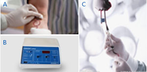 3D净血疗法泛发型白癜风治疗过程示意图 A取血 B净血 C血液回输
