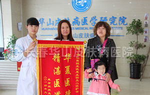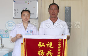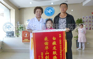 治疗后不仅额头上的白斑消失了,连靠近头顶处的头发都长出