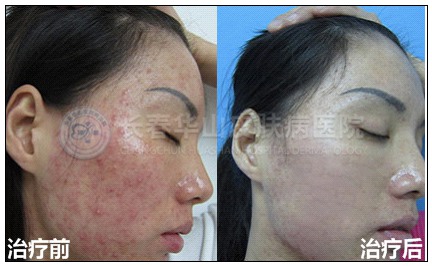 治疗手段:采用内服中药全面调节体内环境,祛除体内热毒,改善血热体质,同时辅以中药熏蒸、超声导入等设备,导入有效药物,药效真达病灶,深层拔除痘根及致痘菌,彻底修复痘印和瘢痕,使之萎缩、变平。