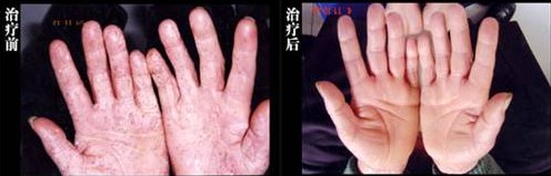 “中西定向灭菌法”将中医理论与国外现代医学技术完美结合,无论病史长短,患者面积 大小,何种类型,均可根据患者体质与病因机制在最快的时间内使皮肤痒感消失,除屑消癣,肌肤迅速恢复正常,光洁滑润。该疗法最大的优势是能源头上斩断诱 因,通过改善皮肤微循环和提高机体免疫力来达到控制疾病的效果,效果持续时间长,不易复发,而且无副作用。通过临床统计,治愈率高达98.7%,且都在 1-3个疗程内基本康复,并具有良好的自身免疫功能,而“中西定向灭菌法”也被患者称为是治疗皮肤癣类顽疾的“金钥匙”。