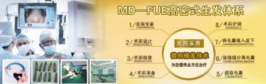 MD-FUE高密式生 发体系,该项技术自引进就受到广大脱发斑秃患者的一致青睐,虽然在《皮肤外科学》书中,对于治疗脱发斑秃也提出了不少类似的方法,但大致都指出“要求条件 高,时间长,费用昂贵;临床上难以普及,且培养过程中还存在一些问题,有待进一步研究。”所以在引进之初,因条件限制,且技术不够成熟,并未大规模的应 用。而长春华山皮肤病医院作为国家级的皮肤病诊疗基地,一致坚持敢为人先,追求卓越的行医精神,对该项技术加以改良完善,并引用大批量尖端诊疗设备,成为 了MD-FUE高密式生发体系的中国第一家诊疗医院;同时该项技术通过国际合作实现,也标志着我院对脱发斑秃治疗技术正式跻身国际顶尖医院行列。