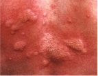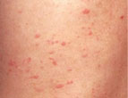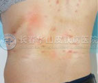 治疗前:背上有许多的红色肿块,剧烈瘙痒,治疗了很长